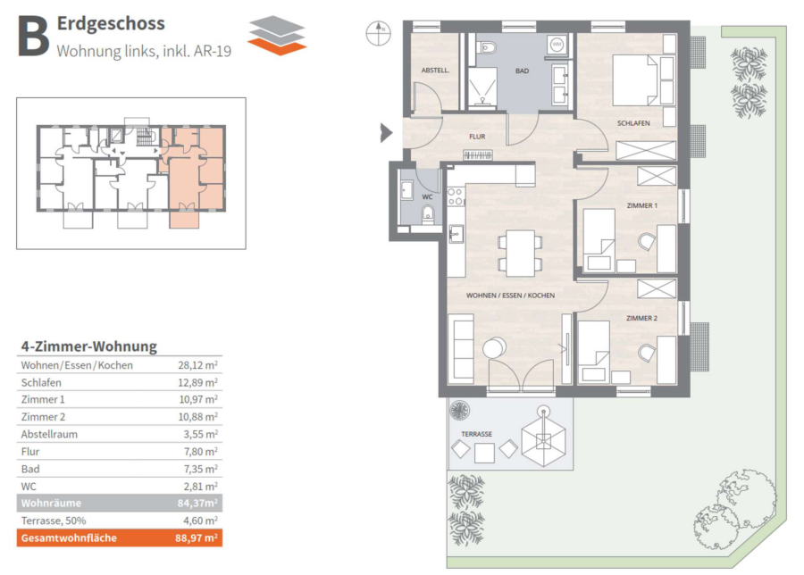 Wohnfläche ca.88,97 m²