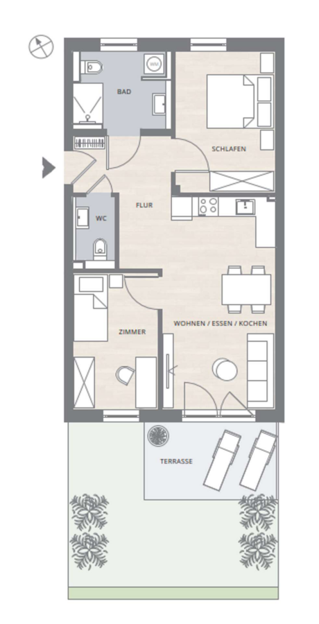 Die Erdgeschosswohnungen überraschen mit sonnigen Privatgärten, die Platz für entspannte Stunden im Freien bieten.