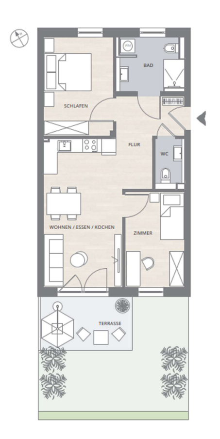 Die Erdgeschosswohnungen überraschen mit sonnigen Privatgärten, die Platz für entspannte Stunden im Freien bieten.