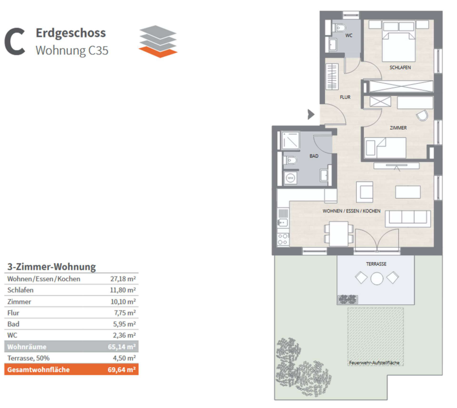 Wohnfläche ca.69,64 m²