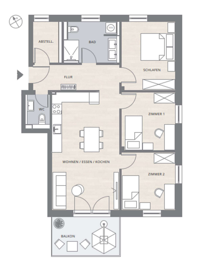 Die Obergeschosswohnungen verfügen über großzügige Südbalkone, ideal, um den Tag mit frischer Luft und einem schönen Ausblick ausklingen zu lassen.