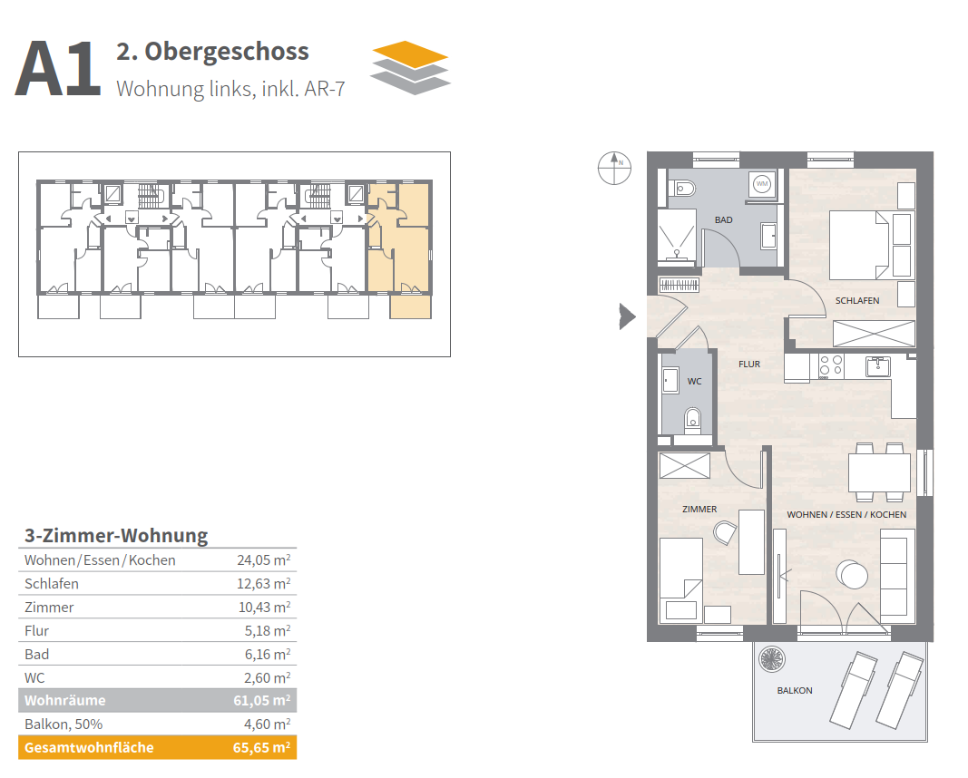 Diese attraktive 3-Zimmer-Wohnung befindet sich im zweiten Obergeschoss und damit in der obersten Etage des Hauses. Da sich keine weitere Wohnung über Ihnen befindet, genießen Sie hier ein besonders ruhiges und ungestörtes Wohngefühl.