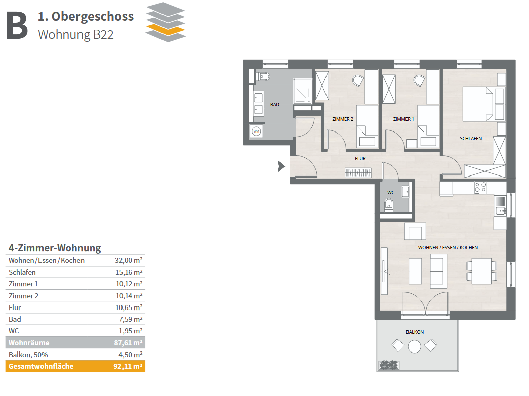 Der offene Wohn-/Ess- und Kochbereich schafft eine einladende Wohnatmosphäre und bildet das Herzstück der Wohnung. Von hier aus gelangen Sie auf den Balkon, der zusätzlichen Raum zum entspannen im Freien bietet.