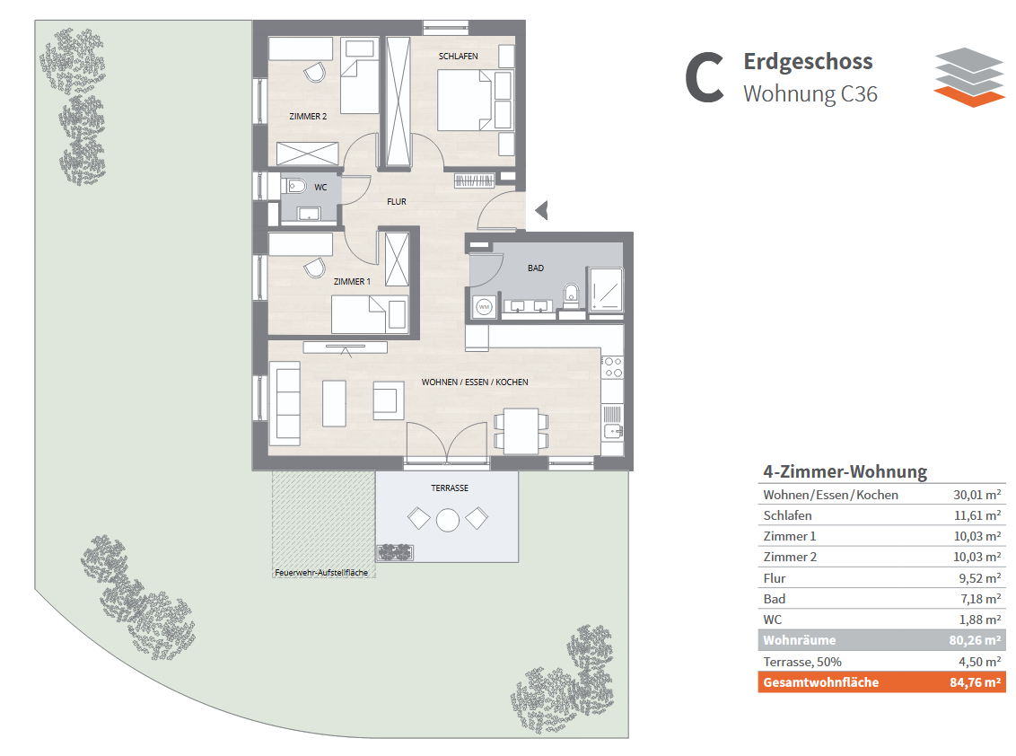 Diese moderne 4-Zimmer-Wohnung auf rd. 85 m² Wohnfläche überzeugt durch ein durchdachtes Raumkonzept mit drei Schlafzimmern, einem großzügigen Wohn- und Essbereich mir Küche sowie einem Garten mit Terrasse, der zum Entspannen im Freien einlädt. Ein Gäste-WC ergänzt die Ausstattung ideal. Mit nur sieben Einheiten im Haus genießen Sie besondere Ruhe – ein Zuhause, das Komfort, Stil und Lebensqualität auf höchstem Niveau bietet.