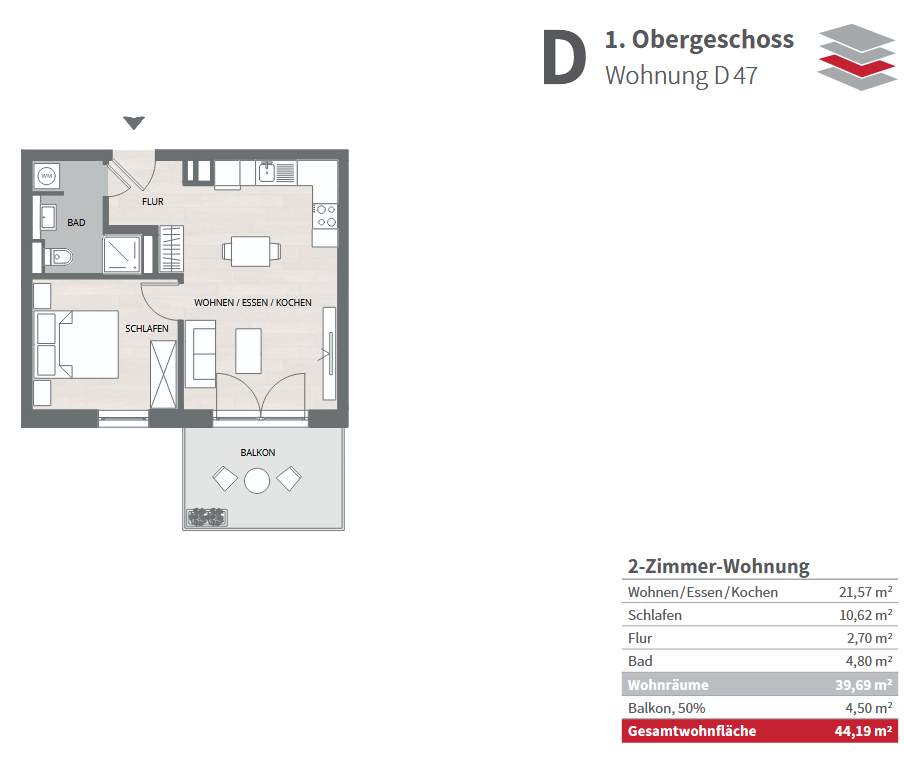 Die angebotene 2-Zimmer-Wohnung im 1. Obergeschoss überzeugt durch einen durchdachten und modernen Grundriss. Herzstück der Wohnung ist der großzügige, offen gestaltete Wohn-, Ess- und Kochbereich, der eine angenehme Wohnatmosphäre schafft und vielfältige Gestaltungsmöglichkeiten bietet. Von hier aus gelangen Sie direkt auf den Balkon welcher zum Entspannen im Freien einlädt.