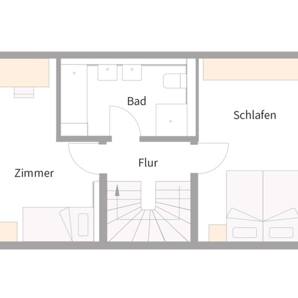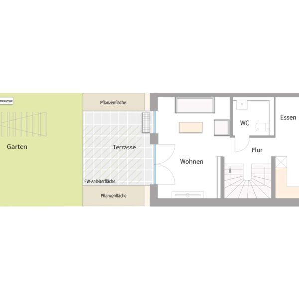 Ausgenommen der Gartenfläche ist der Grundriss des Reihenmittelhauses Nr. 17 identisch mit den Grundrissen der Reihenmittelhäuser Nr. 18, 21 und 22.